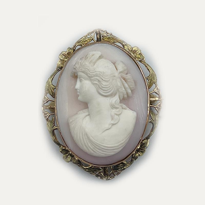 10k Yellow Gold Antique Cameo Brooch – Woman with Pulled Back Hair